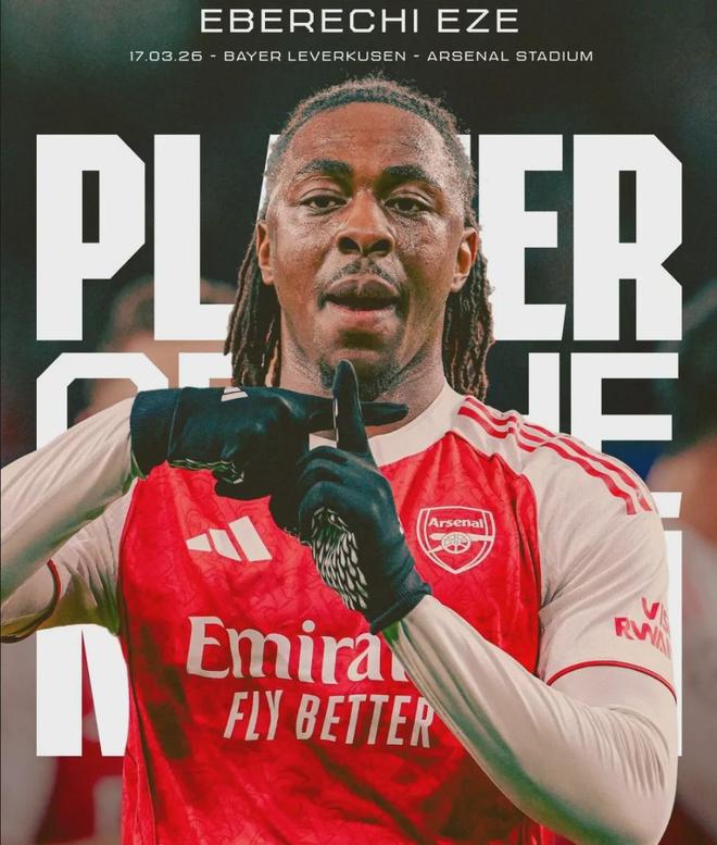 埃泽被阿森纳官方票选为了全场最佳球员!